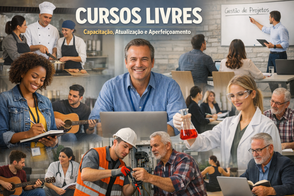 Cursos livres integram o campo da educação não formal, caracterizando-se pela flexibilidade de conteúdos, carga horária e metodologia. Eles não exigem escolaridade mínima, não impõem pré-requisitos acadêmicos e podem ser realizados por qualquer pessoa interessada em aprender ou desenvolver novas competências.